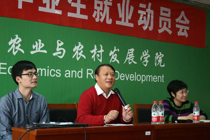 2016-03-073月2日下午,2016届毕业生就业动员大会在明德主楼930顺利举行,我院院长唐忠教授、党委书记张利庠教授出席了此次会议,党委副书记康琳老师主持了会议,我院2016届应届毕业生参加会议。