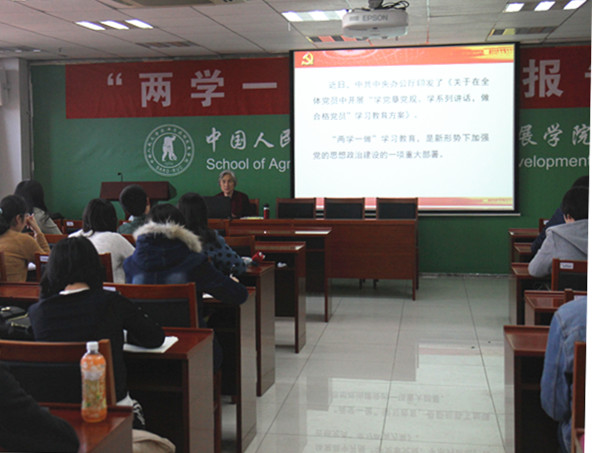 2016-03-242016年3月23日,我院第十五期党校第三讲如期举行。我院邀请到中国人民大学马克思主义学院中共党史系吴美华教授为我院党校学员做“两学一做”专题讲座,深入讲解党章。此次讲座由我院党委副书记、院党校副校长康琳老师主持,学院党校学员及其他学生党员认真聆听。