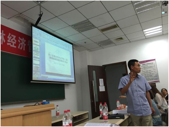 报告环节,两位报告人围绕分论坛主题进行学术展示,中国人民大学的梁文远基于1981-2013年省级面板数据,探讨消费结构变化与中国森林资源增长的关系及其传导机制;南京林业大学的何文剑博士则考察改革后采伐管理制度的管制强度对农户采伐收入的影响。而后,主持人和评论人分别从文章选题、具体概念、问卷设计、工具变量选择和调查方法等问题展开具体评论。最后刘金龙教授与张红霄教授总结此次汇报会,并建议林经人将规范和实证研究结合起来,形成自己的研究范式。