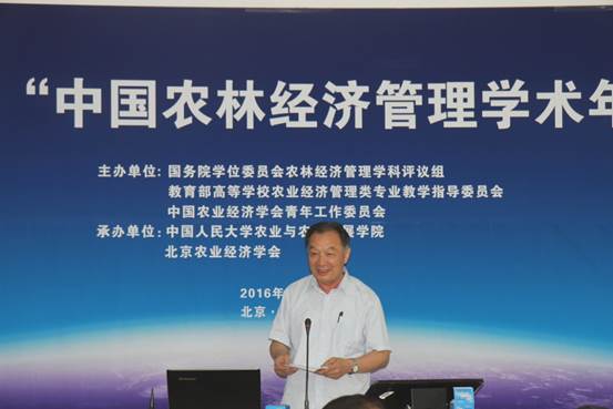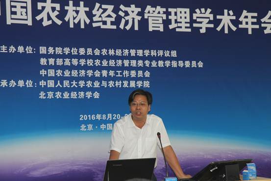 2016-08-228月22日上午11时,2016中国农林经济管理学术年会第二场学术前沿报告会与闭幕式在中国人民大学明德法学楼0101教室举行。报告会与闭幕式由中国农业经济学会青年工作委员会主任委员、中国人民大学苏州校区党委书记、中法学院和国际学院院长、农业与农村发展学院教授朱信凯主持。