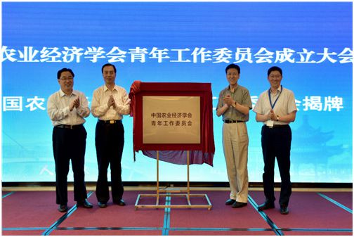 成立大会上,中国农业经济学会会长尹成杰、中国农业大学校长柯炳生共同为中国农业经济学会青年工作委员会揭牌,在场专家学者一起见证了这一历史性时刻。