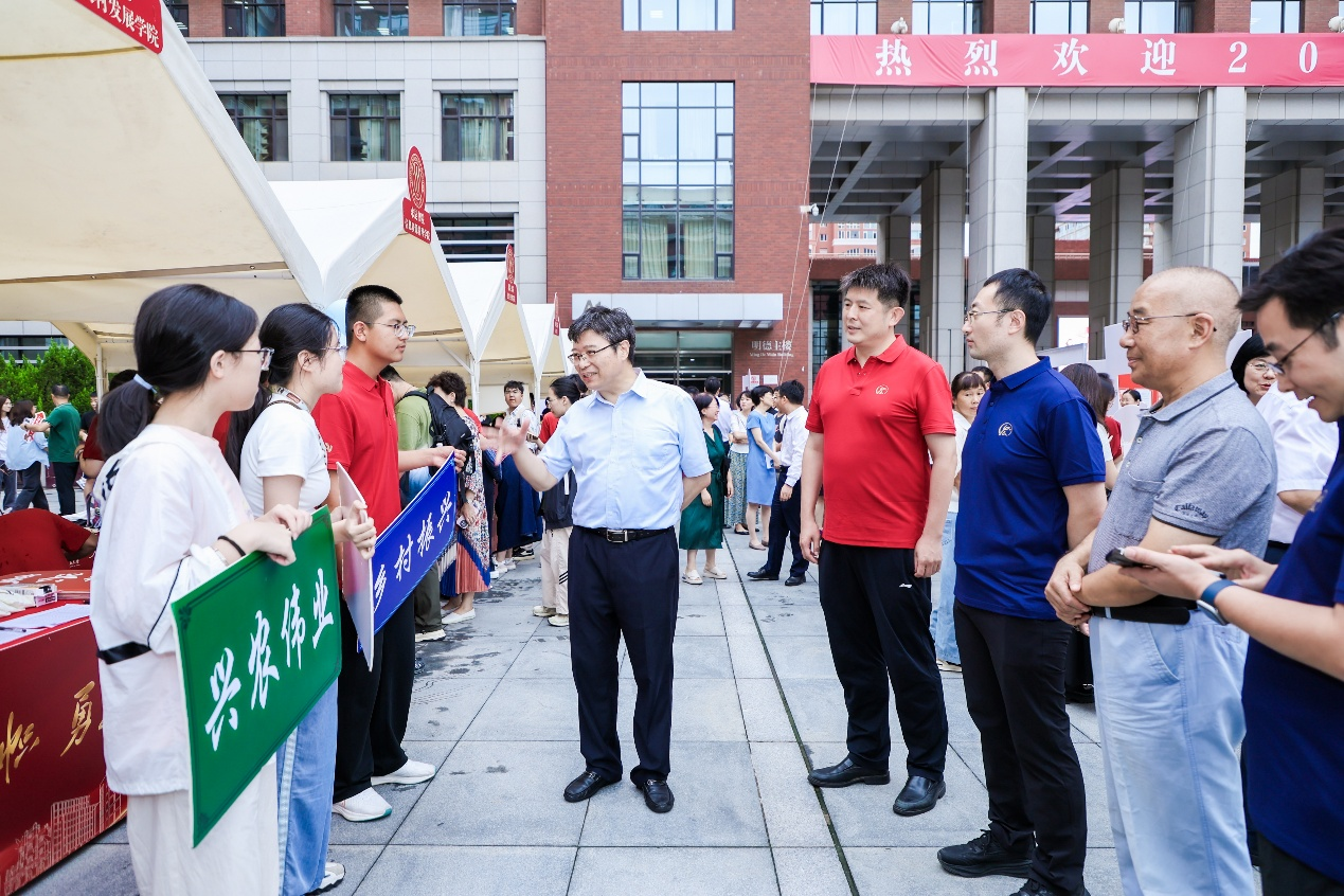 迎新现场洋溢着蓬勃朝气。中国人民大学党委书记张东刚、校长林尚立亲临学院报到点,与新生们亲切交流,表达热烈欢迎。张东刚书记在视察我院迎新工作时,与新生进行了亲切交流,关切地询问了学生情况,勉励各位新生勤奋学习、不断成长。