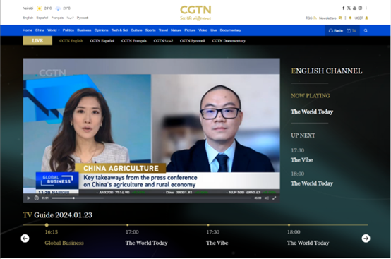 我院王翔瑞副教授做客中国国际电视台(CGTN)解读 2023 年农业农村经济运行情况
