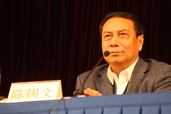 开幕式结束后,“新形势下我国粮食安全的现状、挑战及对策”学术研讨会举行主旨报告。第一位报告人是78级校友、中央农村工作领导小组副组长、办公室主任、农发学院名誉院长陈锡文,他就我国粮食安全问题作主题报告,认为我国粮食安全问题目前面临三大挑战,分别是:一、我国农产品价格远远高于国际市场价格;二、我国农业生产成本正在快速地上升;三、过分追求产量的农业生产方式给我国农业生态环境带来了极大的破坏。陈主任提出通过体制改革、农村土地制度制度创新、农业经营体系的创新来应对以上三大挑战。陈主任重申要解决我国粮食安全问题必须要认真贯彻中央提出的要求,以我为主,立足国内,增强产能,适度进口,科技支撑,同时牢牢记住坚持谷物基本自给,口粮绝对安全。