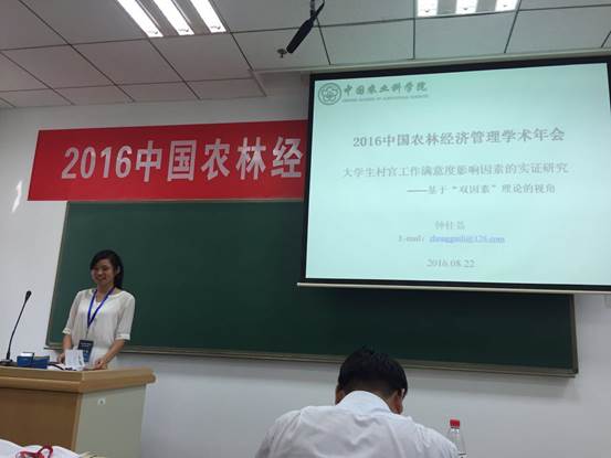 来自中国农业科学院农业经济与发展研究所的钟桂荔做题为“大学生村官工作满意度影响因素的实证研究”