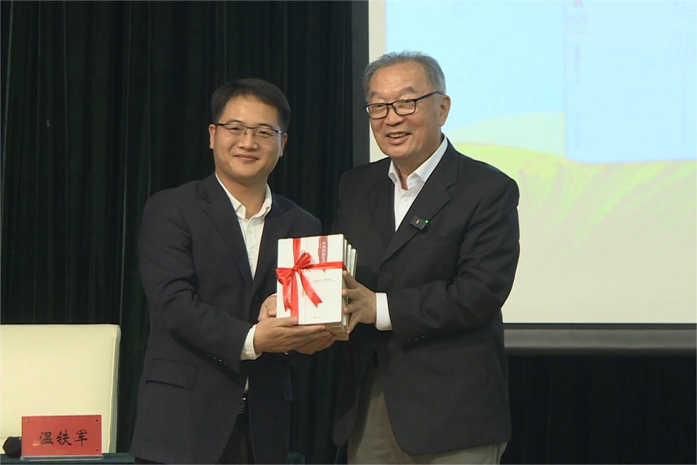 2024-10-122024年10月9日下午,农业与农村发展学院建系70周年/建院20周年院庆系庆老院长、老书记系列学术讲座第二讲在学校八百人大教室成功举办。讲座以“经济周期与‘三农’问题”为主题,由学院原院长温铁军教授主讲。学院党委书记曾丙健主持讲座,并代表学院接受温铁军教授赠送的《八次危机》(100万册纪念版)。