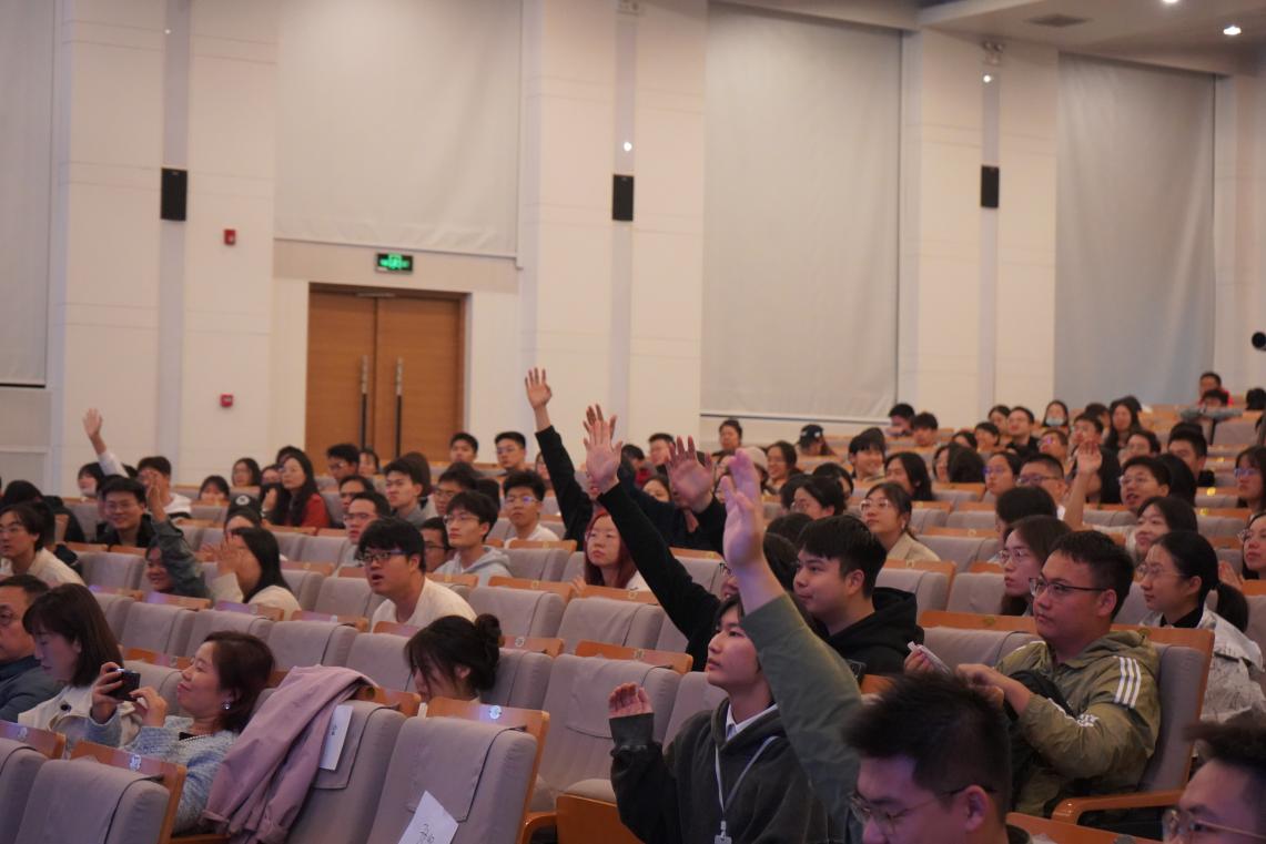 学校300余名师生聆听了本场讲座。提问互动环节,同学们积极踊跃发言,温铁军教授一一作出回应与解答,并向提问的同学赠书。