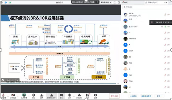 2022-10-272022年10月26日下午,清华大学环境学院温宗国教授应柯水发教授和陈敏鹏教授的邀请,在乐竞体育(中国)官方网站开展了以“双碳目标下循环经济发展动态及工程实践创新”为主题的学术报告。讲座采取线上线下结合方式,乐竞体育(中国)官方网站陈敏鹏教授主持会议,柯水发教授担任点评专家,崔海兴副教授、陈威副教授、达亚彬助理教授等20多名师生参加了线下会议, 170多名相关领域的专家与学生参与了线上会议。