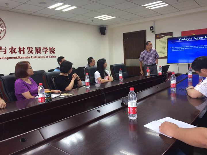 2016年8月23日下午15:00,美国阿肯色大学教授,American Journal of Agricultural Economics期刊副主编Rudy Nayga在明德主楼931会议室为我院师生做了题为《How to publish in high quality scholarly journals》的学术报告。郑适副院长主持了会议。我院唐忠院长、庞晓鹏副院长、王志刚教授、刘金龙教授、陈卫平教授、彭亚拉副教授、刘晓鸥副教授、钟真副教授、朱勇老师以及部分本硕博士生参加了本次讲座。