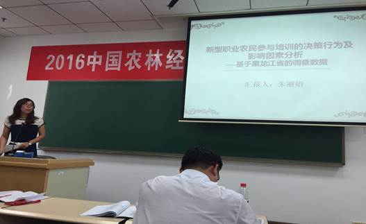 来自东北林业大学的朱丽娟做题为“新型职业农民参与培训的决策行为及影响因素分析——基于黑龙江省的调查数据”的报告